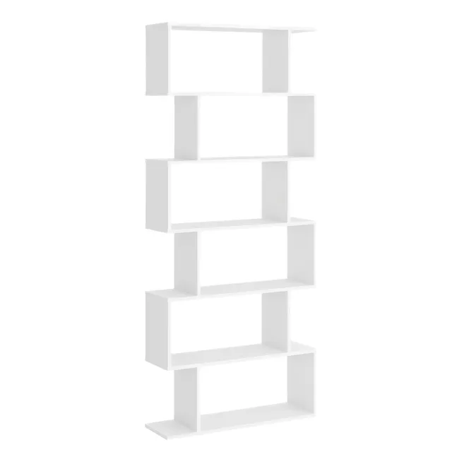 - Estantería para libros de estilo moderno en forma de S Estantería de color blanco, perfecta para tu oficina, dormitorio, sala de estar y más Amplio espacio de almacenamiento con 6 niveles de estantes más la parte superior, para libros, decoraciones y más Se puede utilizar como estantería, estante para exhibir tus decoraciones, entre otros Fabricada en melamina de madera resistente, perfecta para un uso prolongado Con gran capacidad de carga, puede soportar hasta 5 kg por nivel Incluye sistema anti vuelco para fijar en la pared para mayor estabilidad y seguridad Se requiere montaje